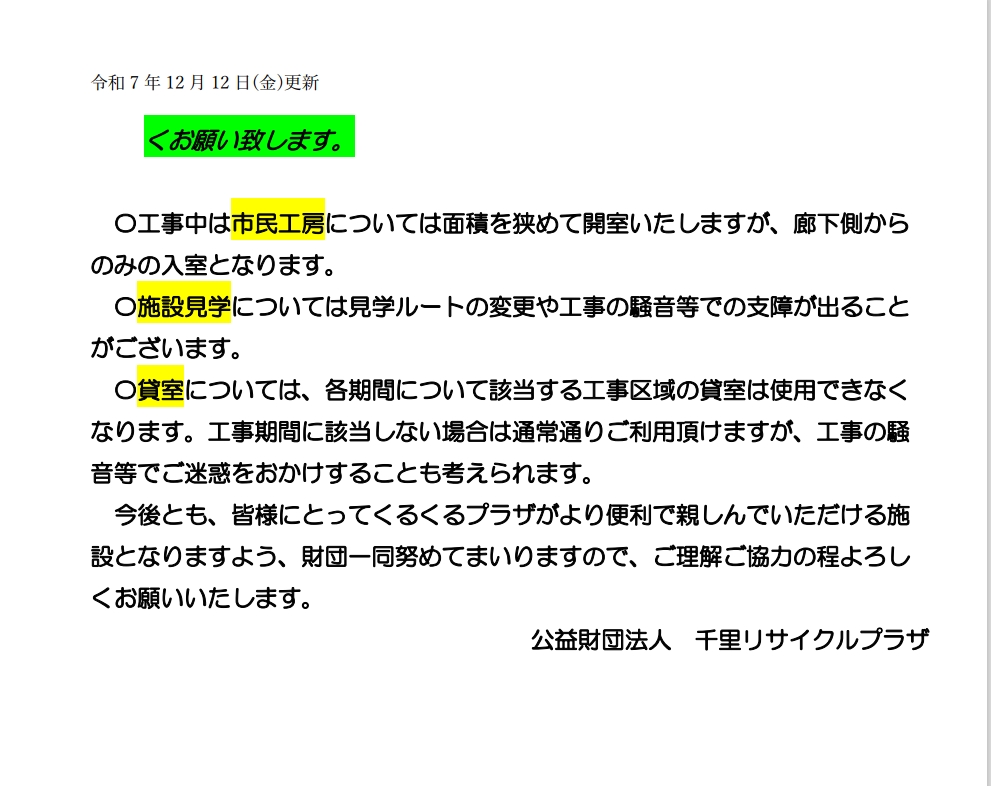 広場工事のお知らせ